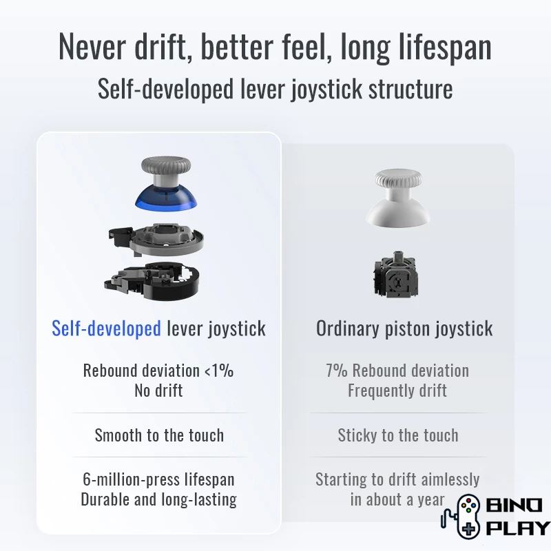 🎮 Hall Effect Joystick & Trigger: ควบคุมแม่นยำ ป้องกัน drift, อายุการใช้งานยาวนานถึง 10 ล้านครั้ง, พร้อม D-Pad hybrid 8-way